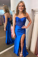 This elegant teal mermaid prom dress is perfect for senior proms. The strapless design adds a touch of sophistication while the rhinestone detailing adds just the right amount of sparkle. With a flattering mermaid silhouette and a slit. this dress is sure to make you stand out on your special night.